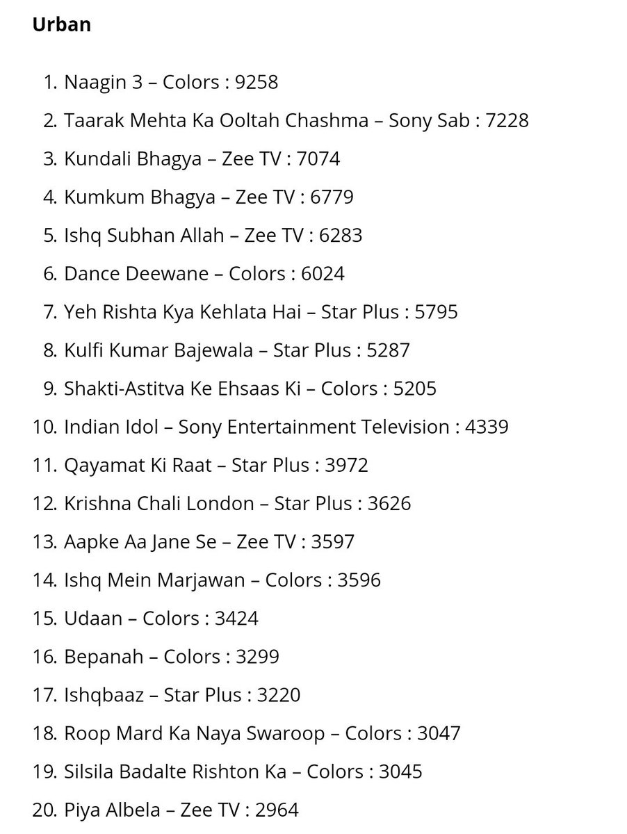 Barc Trp Report Week 31 Yeh Rishta Kya Kehlata Hai Rules List Of Top 10 Tv Shows Of The Week Tv News India Tv Nexa iifa awards thailand has occupied 10th among channels, star plus is back at first spot, while colors tv drops down to the second spot.